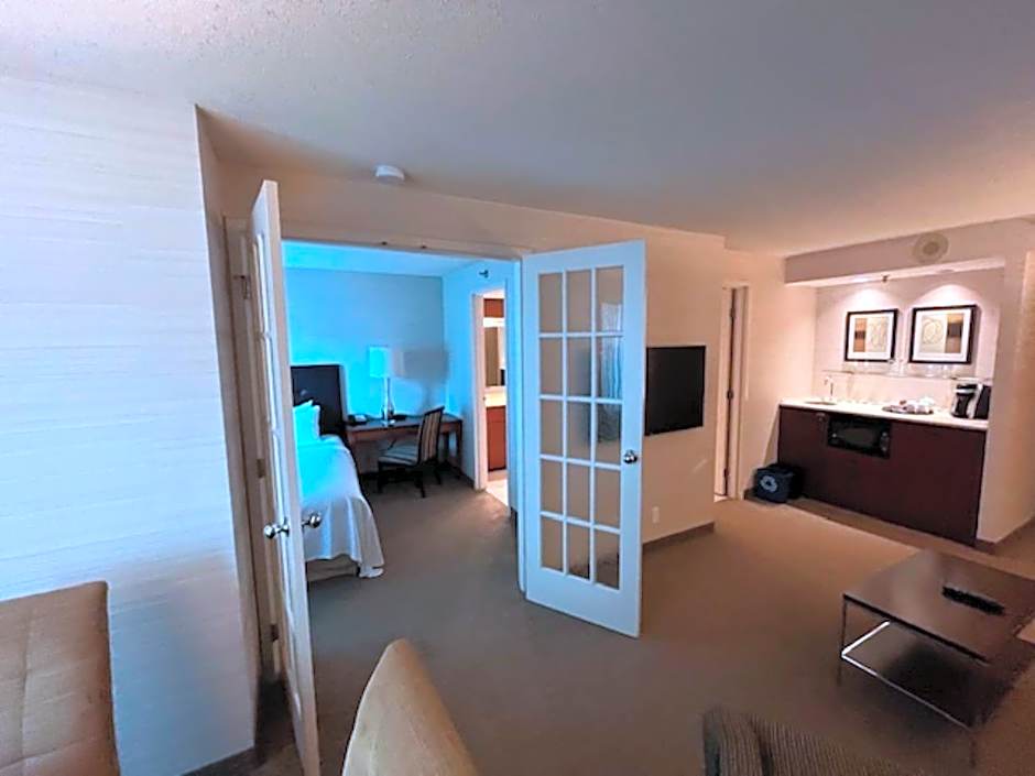 This suite features 2 37-inch flat-screen TVs, a wet bar and a separate living room.